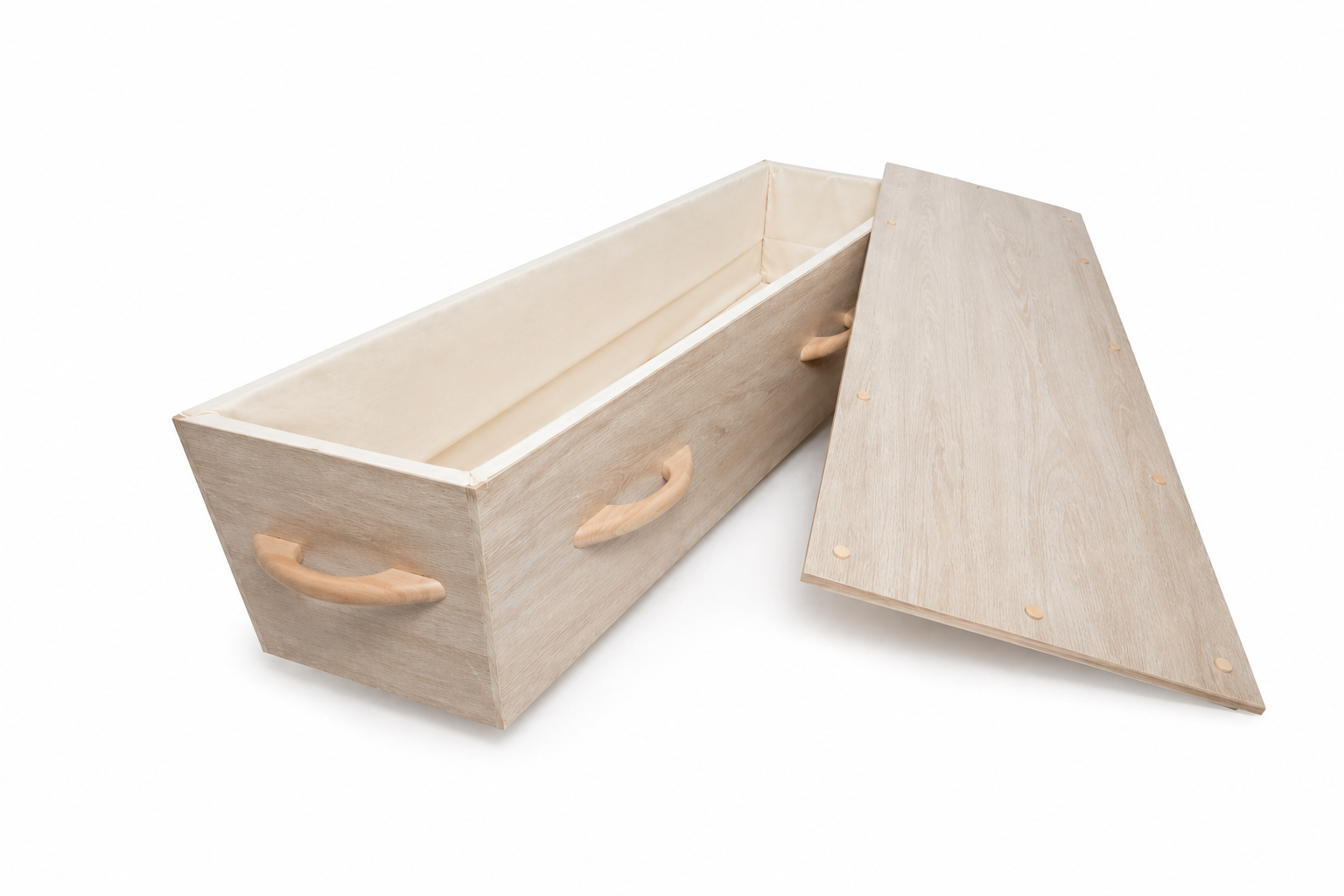 Klassieke hout-look, amper te onderscheiden van echt hout. De Essential Licht Eiken is een tijdloze, ecologische uitvaartkist met een draagvermogen van 200 kg geschikt voor crematie en (natuur)begraven, gemaakt in Nederland.